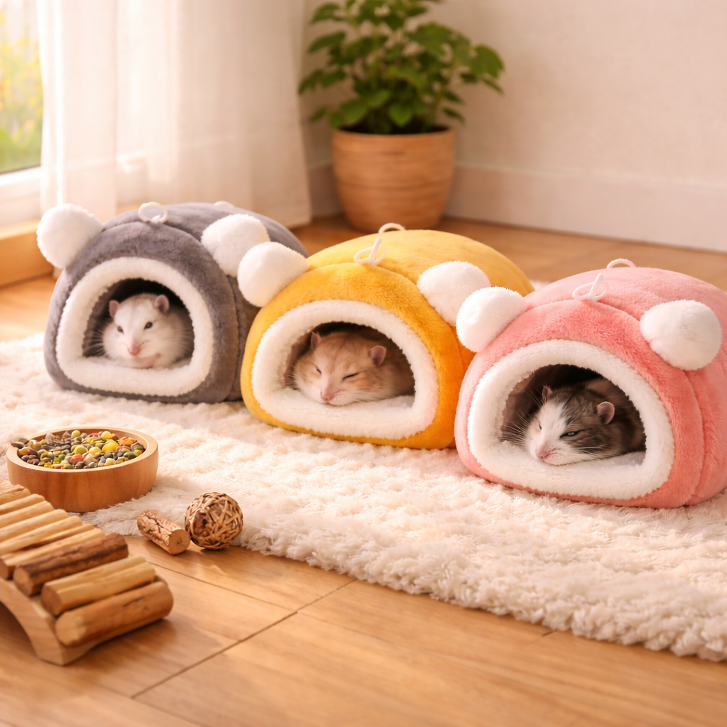 Give your small pets a warm and comfortable place to rest. Our plush pet nest is designed to create a safe and cozy hideaway where hamsters and other small animals can relax, sleep, and feel protected. Soft materials, adorable design, and gentle warmth make it the perfect little sanctuary for your furry friend.